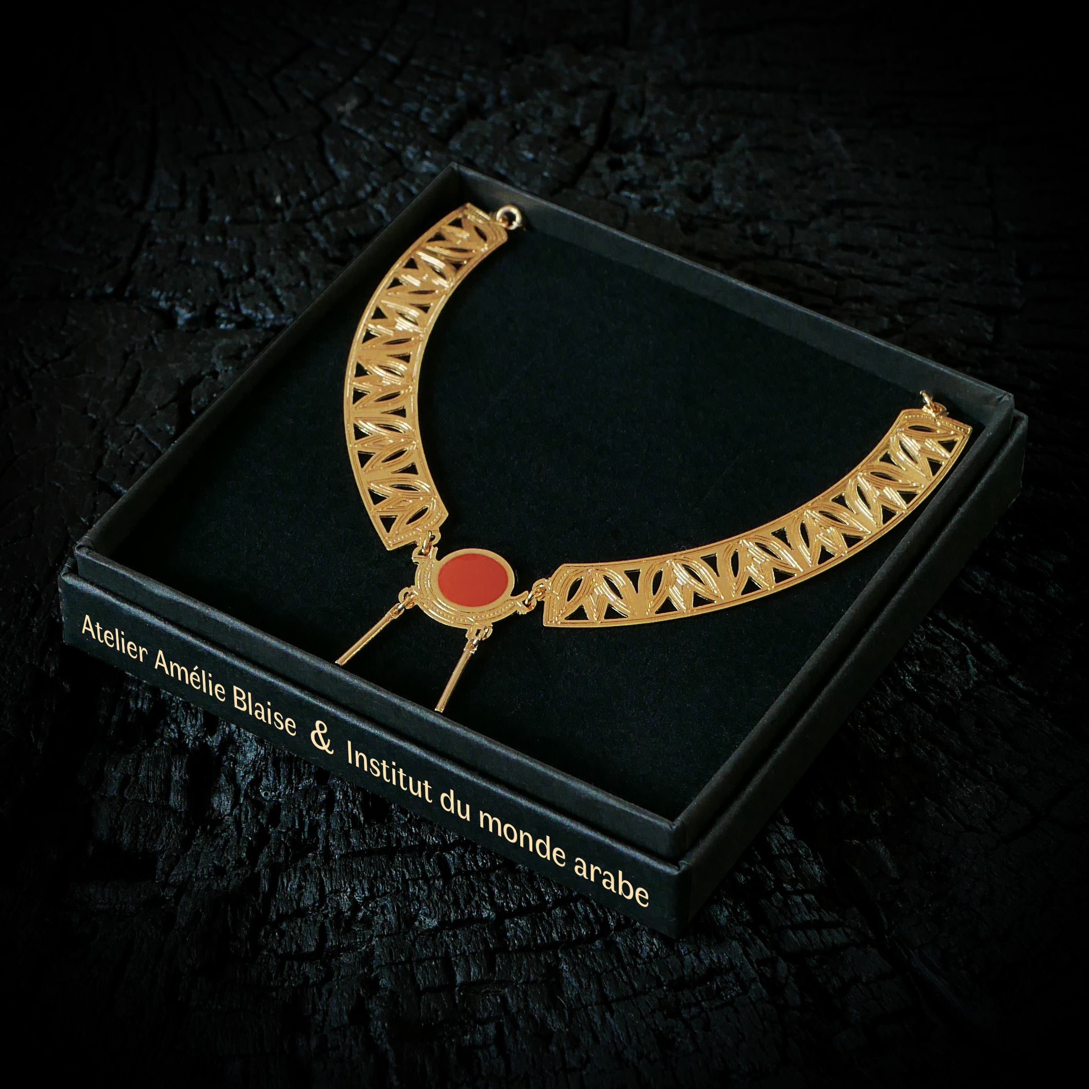 À l’occasion de l’exposition Le Mystère Cléopâtre, l’Institut du monde arabe a convié la créatrice de bijoux Amélie Blaise à imaginer une collection inspirée par cette icône féminine captivante et légendaire. Ces bijoux de mode, conçus avec minutie et passion dans l’Atelier Amélie Blaise à Paris, sont réalisés en laiton, délicatement découpés et sublimés par une finition dorée.