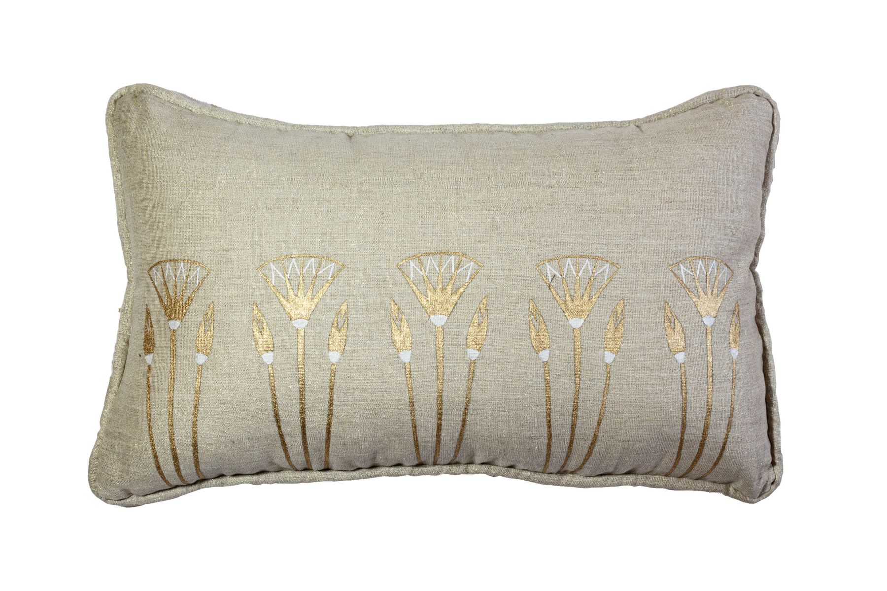 La fleur de lotus était une source majeure d'inspiration et un symbole important de la renaissance dans l'Égypte ancienne. Elle était associée au soleil levant et à l'aube de la création. En raison de sa beauté exceptionnelle et de sa symbolique liée à la renaissance et à la vie, elle apparaissait fréquemment dans l'art de l'Égypte ancienne. On la représentait à travers ses différentes étapes de croissance. Pure lin avec fil d'or. Dimension 65 x 45