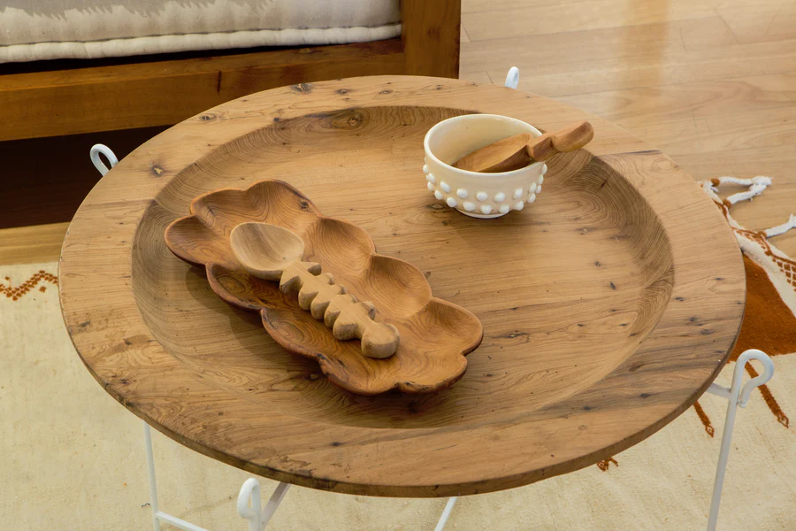 Plat en bois de thuya. Matière : bois huilé (huile alimentaire) Dimension : 34x15cm Lavable à la main. Ce produit est fabriqué à la main au Maroc. Des variation de teintes, formes, finitions peuvent apparaître et contribuent au caractère unique de chaque pièce. Nos plats en bois de thuya sont en bois naturel huilé à l'huile alimentaire. Pour les entretenir, les laver rapidement à l'eau et les huiler légèrement avec un chiffon à l'huile alimentaire(type huile de tournesol).©Lalla De Moulati